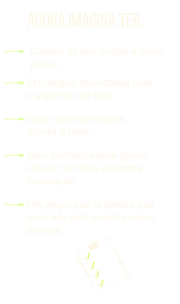 Uma assinatura prática para psicólogos, profissionais da saúde e autônomos que querem transformar insegurança em consistência e ter clareza sobre o que postar.